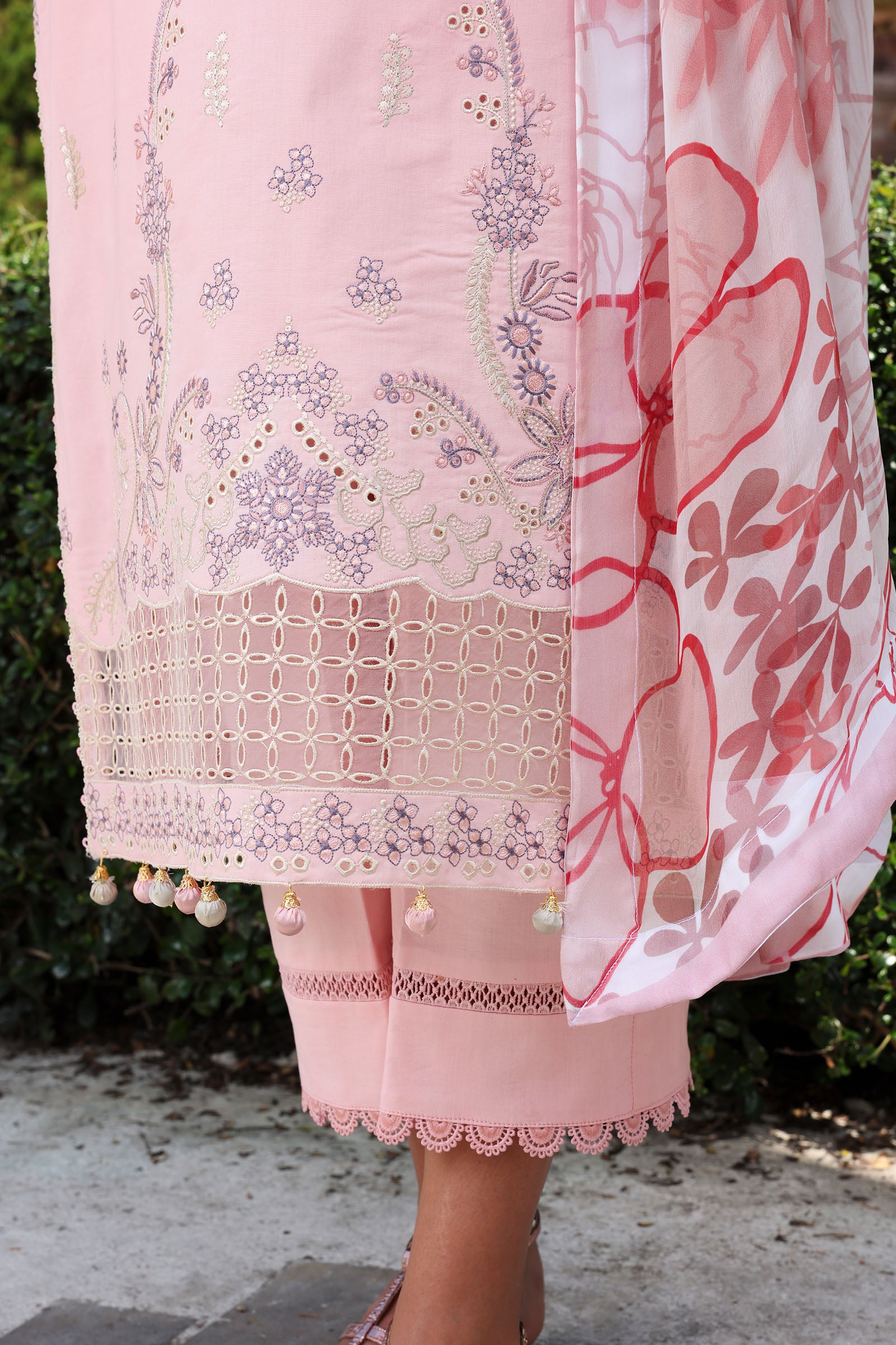 - Embroidered Organza Daman And Sleeve Patch
